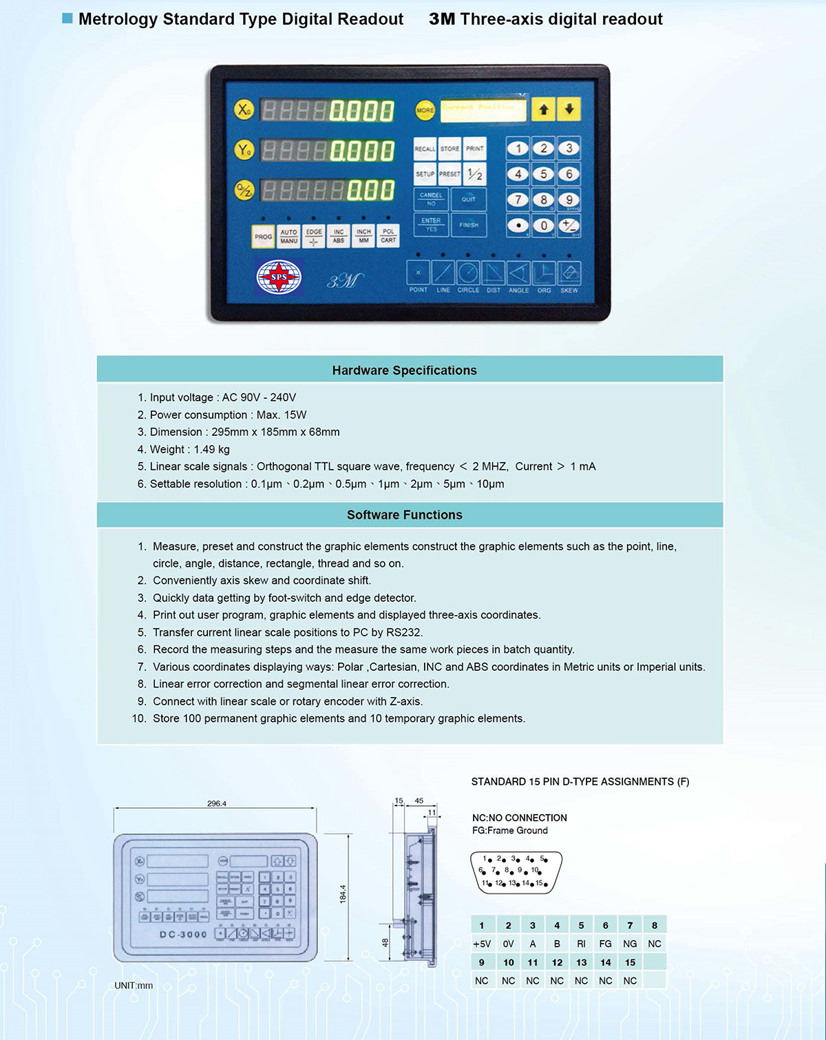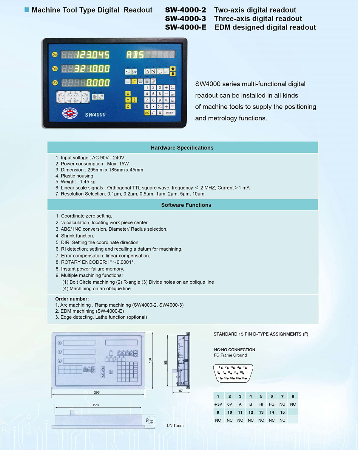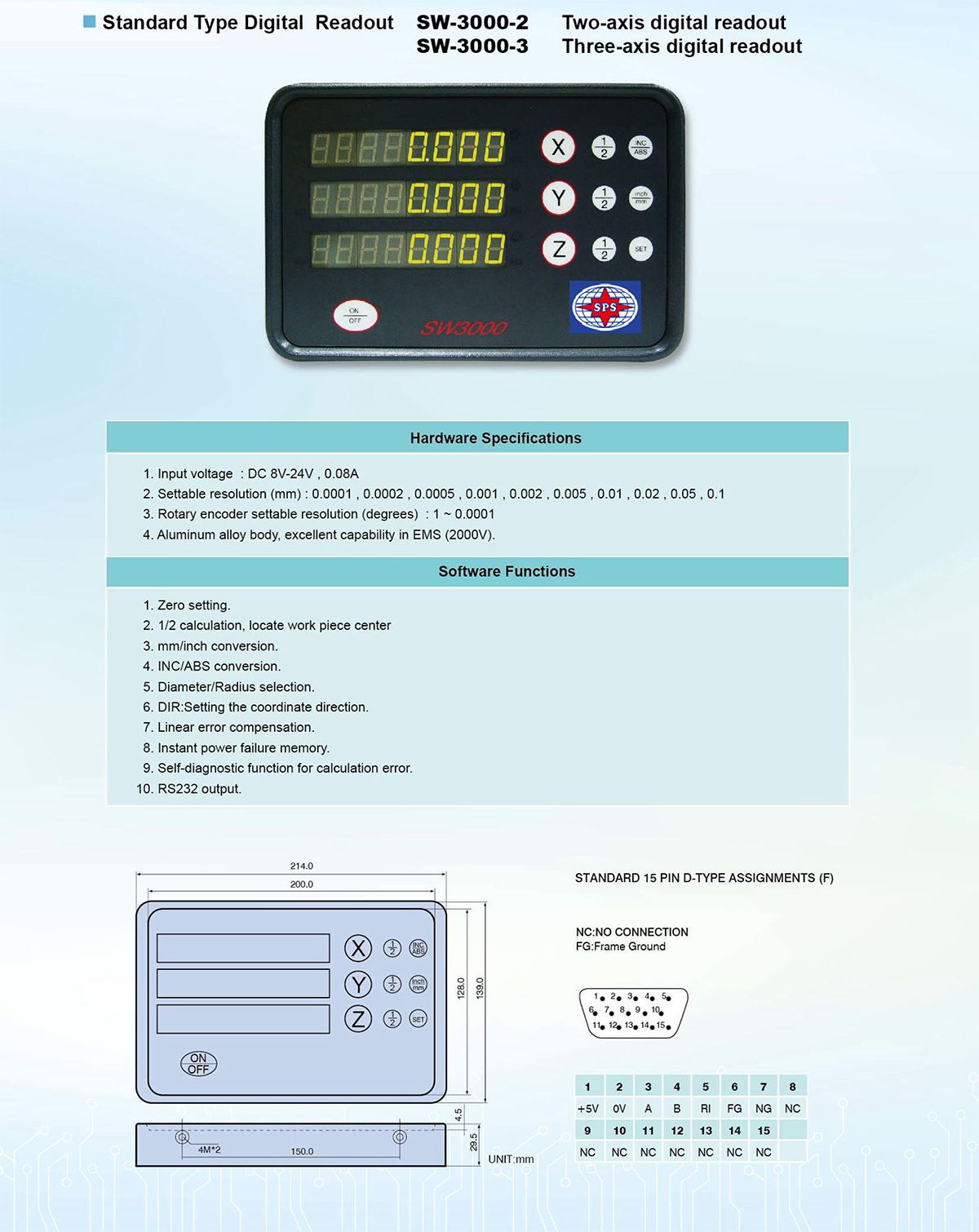 | Function | SW-3000 | SW-4000 | 3M | 1M |