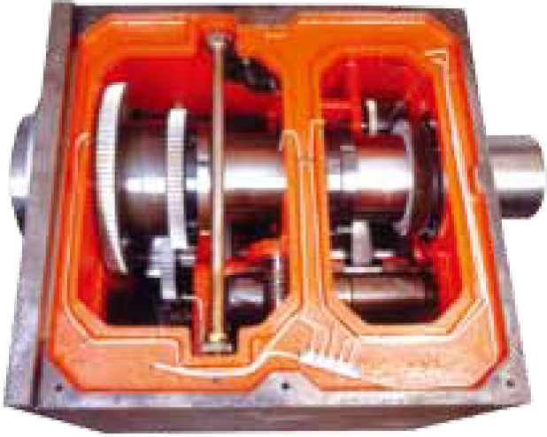 - Sealed oil bath lubrication system with enforced oil supply by mechanical pump to achieve better lubrication effects.